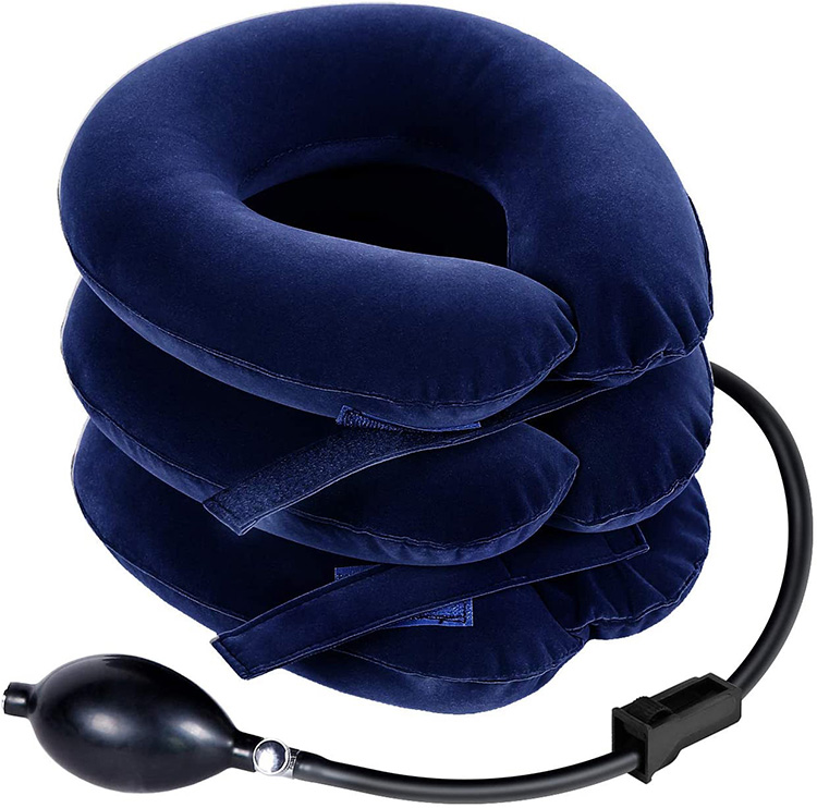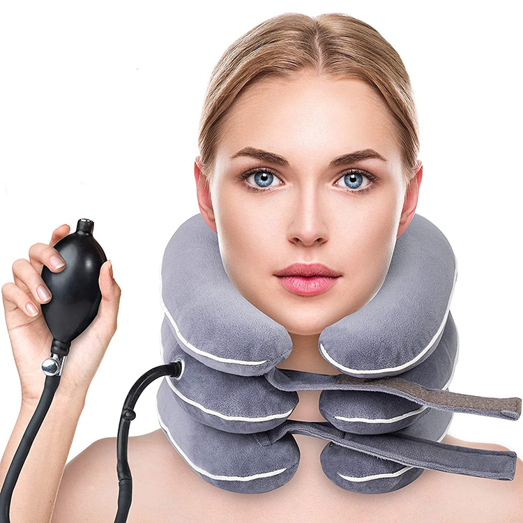 گردن جي ڇڪڻ واري ڊيوائس ڪالر بريس گردن جي سپورٽ اسٽريچر اسپائن الائنمينٽ لاءِ: انفلٽيبل گردن جي بريس نرم پلاسٽڪ مان ٺهيل آهي ۽ ڳچيءَ تي هوا سان لڳل آهي. ٻيو رٻڙ مان ٺهيل آهي، اسپرنگ وانگر، جيڪو ڦهلائڻ کان اڳ ڳچيء جي چوڌاري ڳنڍيندو آهي. وائنٽيليشن جي مقدار کي هر شخص جي ڳچيء جي ماپ، ان جي استعمال ۽ حالت مطابق طئي ڪري سگهجي ٿو. هي ڳچيءَ جو ڪنگڻ عملي آهي ڇاڪاڻ ته ڪنهن به ٻن ماڻهن جي ڳچيءَ جي سائيز ۽ پروفائل هڪجهڙي نه هوندي آهي، ۽ اهو ان حقيقت کي معاوضو ڏئي ٿو ته ڳچيءَ کي گهربل پوزيشن ۾ مقرر نه ٿو ڪري سگهجي ۽ گهربل ڪم سرانجام ڏئي جيستائين هر فرد لاءِ هڪ ڪڙي نه ٺاهيو وڃي.
